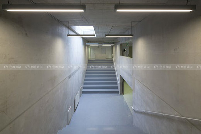 該建築具有聲學和熱性能:混凝土牆、隔熱層、雙層真空玻璃窗、實木聲學反射闆和穿孔吸音鋁闆。