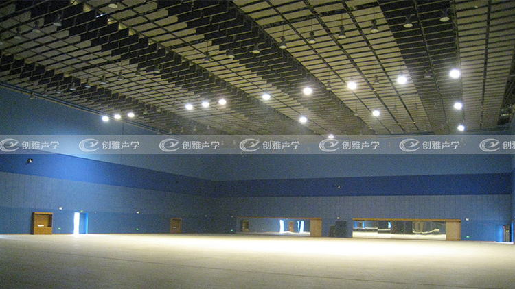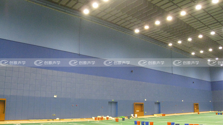 爲瞭在保證瞭語言清晰的同時,又能兼顧聲音的豐滿度,滿足該羽毛球館進行比賽和多功能化使用的要求。我們選擇在比賽池周圍矮牆使用聚酯纖維吸聲闆,天花頂棚使用寬頻空間吸聲體。平面懸挂,均勻分布。大面積布置頂硼吸聲材料可有效大幅度降低羽毛球館内混響時間,同時消除羽毛球館頂棚與地面之間産生的顫動回聲。 |