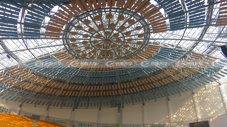 體育場建築形态具有節奏韻律感,形态優雅的68片鋼結構屋蓋有序而富有變化,結構與造型得到統一,建築富有力的節奏感和韻律感。體育館與訓練館有機的結合在一起,功能互補,建築形态自由完整,重複韻律中富於變化,造型採用單元式三角形處理手法,使建築充滿瞭體育建築的力量感。遊泳館的造型新穎,尊重自然規律採用方整規則的整體形态,與基地内其他場館遙相呼應。場館天花主要採用瞭平闆空間吸聲體,牆面採用槽木吸聲闆的吸聲材料控制混響時間。 |