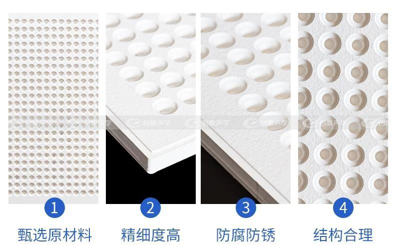 使用穿孔吸音闆可以很好的解決室内回音的問題。聲波進(jìn)入穿孔吸音闆的孔洞後(hòu),