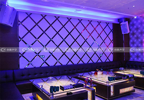 KTV裏面會有很多低音炮來烘托氛圍,低頻的聲源傳播是很快的,低頻聲音會通過KTV裏面的很多擺(bǎi)設物都會産生聲反射,爲瞭(le)把這些反射聲處理所以就要用到吸音材料處理。吸音材料會把這些反射聲消掉。吸音材料我們會用到軟包吸音闆,聚酯纖維吸音闆。