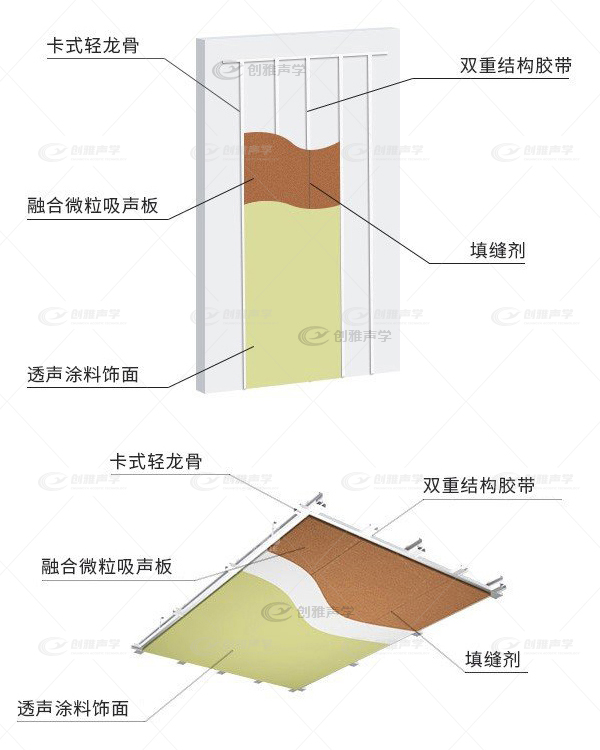 3、粘附力強,吸附聲波、有效防止聲音的擴散